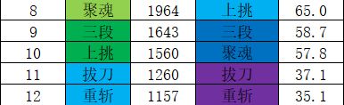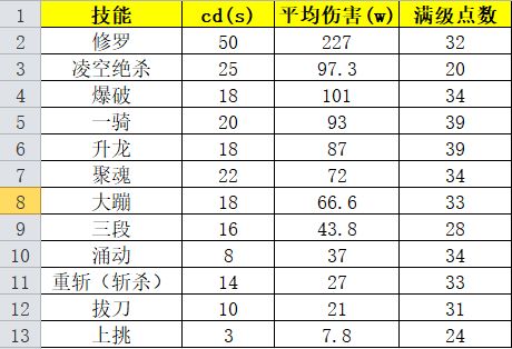 这里可以看到常规常用的几个技能不论输出和性价比都比较高