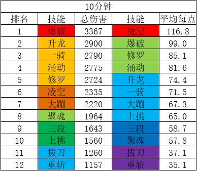 然后我就10分钟长度的副本来做分析,再除以每个技能所需技能点数来看一下技能性价比