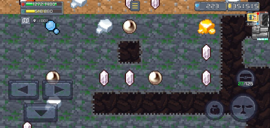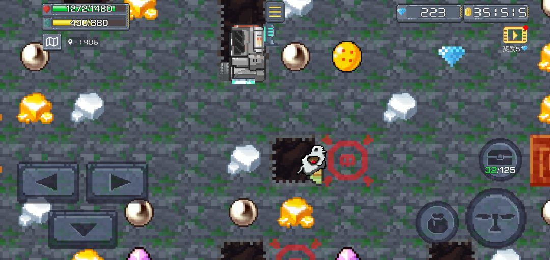 矿石:共22(15+4+1+2)种,15种标准矿石,无特殊性,价格随出现次序增加而增加;特殊矿石——天然气,采集有30%概率爆炸(使用炸药炸掉也是概率爆炸),造成5%最大生命+31的伤害,新手车也可以抗两下不死,价值200,刚刷新时远超同深度矿石;特殊矿石——钻石,愿望石(龙珠,再次手动滑稽),钻石采集可以获得1钻石,愿望石采集可以随机获得2-5。稀有矿石四种,8000+深度开始刷新,刷新率低(几乎看不见),不影响标准矿石刷新。