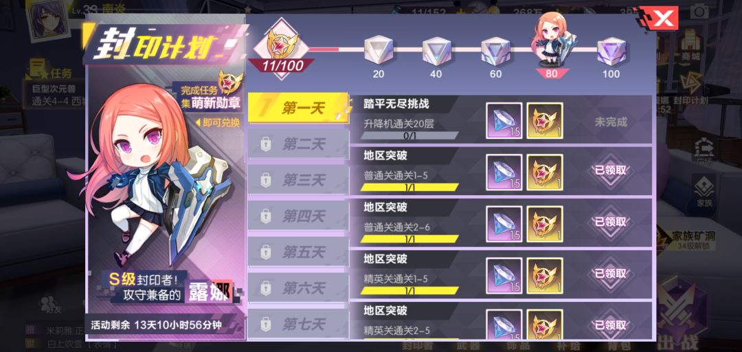 有大佬知道,这个封印计划如果要拿100勋章,每天都要打满吗
