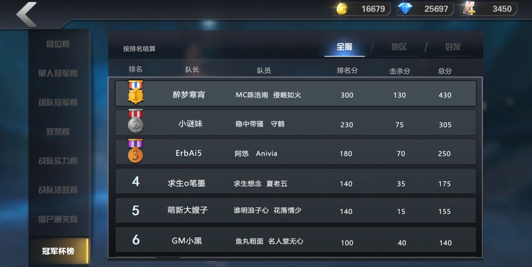 击杀一人+5分,名次分+击杀分 决定最终队伍名次!