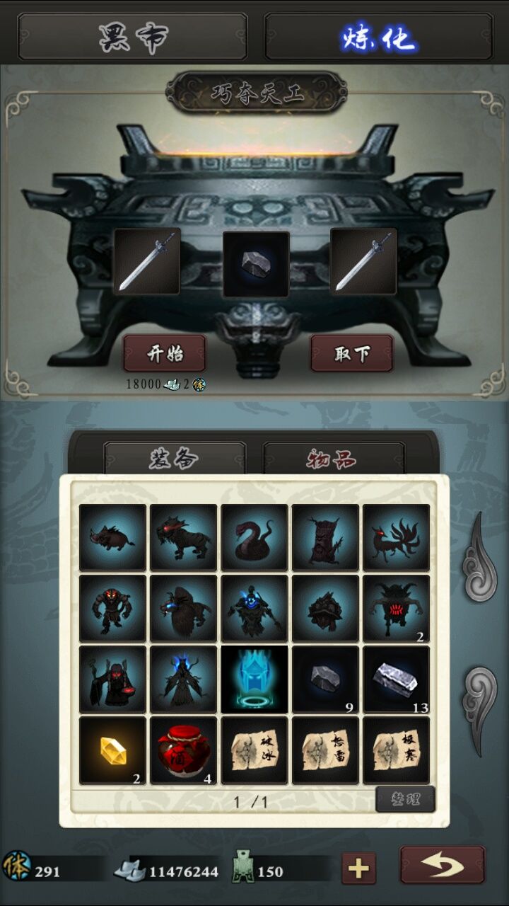 熔装备可以得到强化装备材料:生铁 精铁 刚玉 玄晶(也可三合一例如:三个生铁35%合成一个精铁)