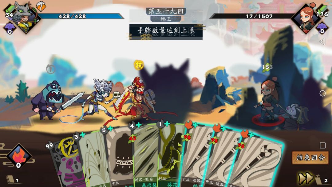 拿金钟罩不仅防明王,也防止一回合没解决敌人而受到大量伤害。这样主要费手,馆主和东方可以补伤害。