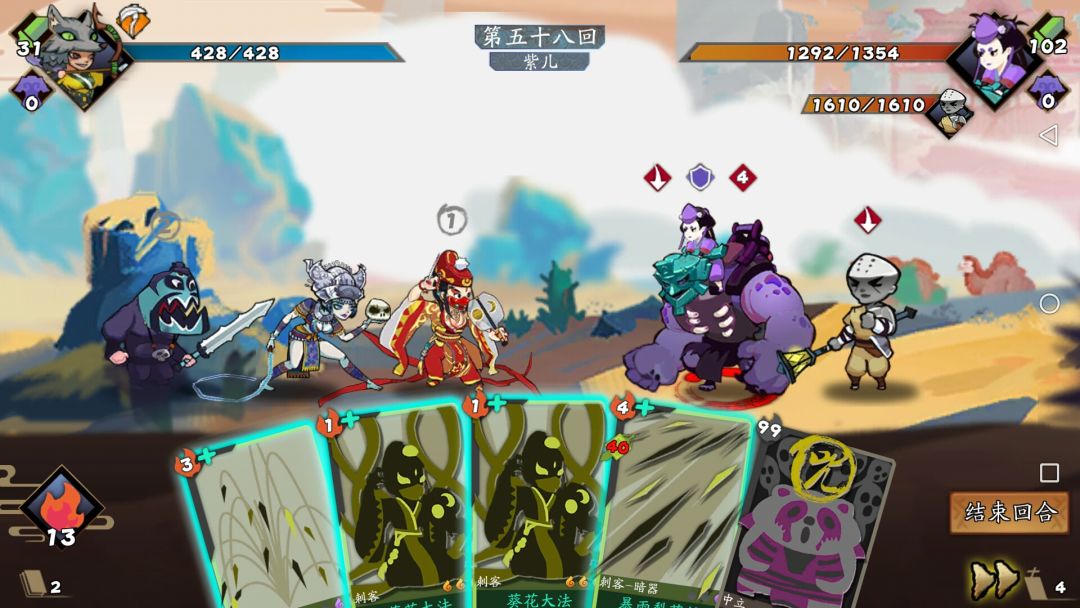 但打紫儿时很容易被叠毒,这时就少打葵花,不然直接几十层毒,就打暴雨和天女来叠伤害