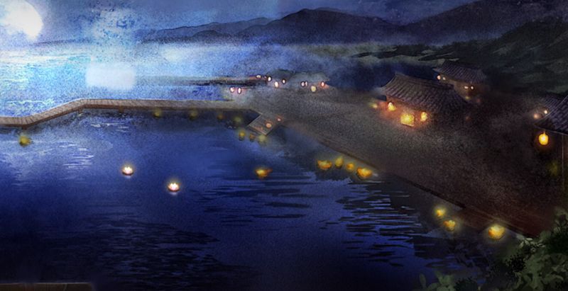 柔和的月色下,水中的花灯闪烁。看着眼前的场景,四个人的心里都变得柔软起来。