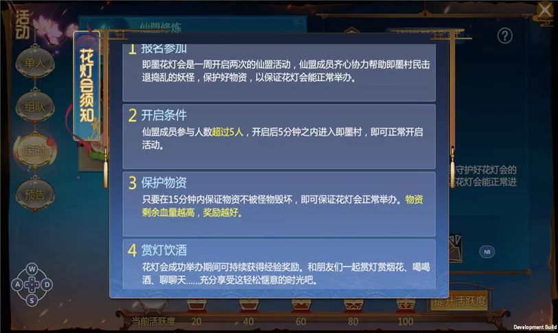 由于来捣乱的妖怪数目众多,因此这里常常出现百人同屏打群架的状况。但槐米相信仙盟人数众多,这根本不是问题。另外,在打群架的同时,还得注意保护物资在15分钟内不被破坏,这样才会在花灯会结束的时候得到更多更好的奖励。【槐米才不会说这里掉落法宝呢!】