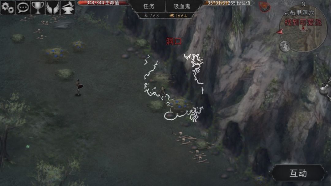 一共有7个洞窟,12467洞窟只会刷普通老鼠和普通狼,老鼠是20血,狼是125血左右,3是近2000血的精英怪,5是任务怪都有英文名字,是一只很弱的小不点怪,然后是一只410的精英狼。