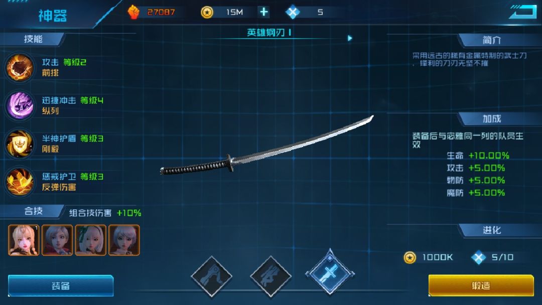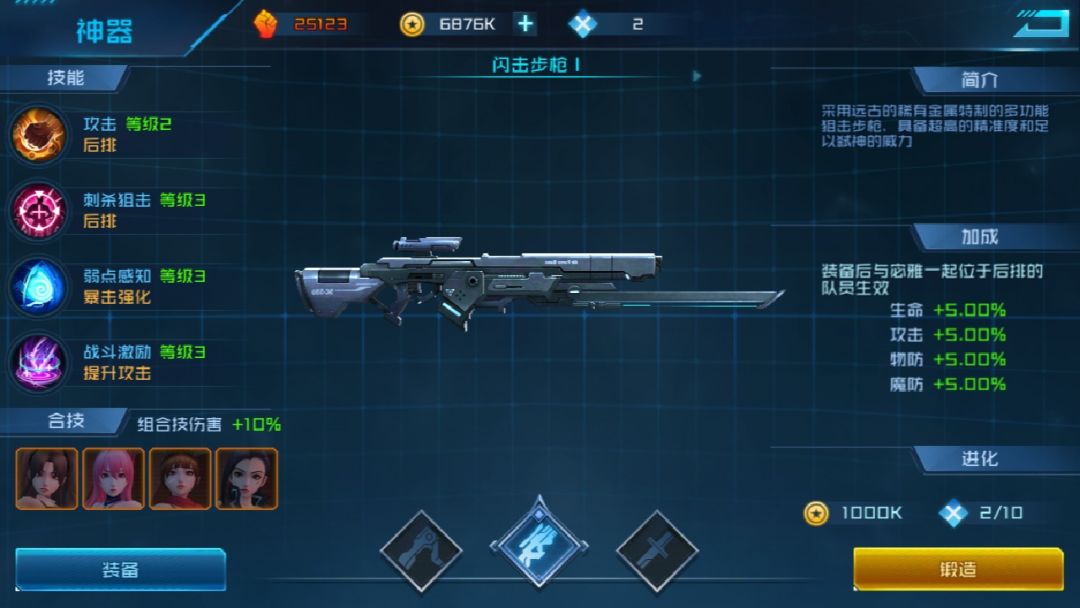 2.不同武器加的属性比例不一样,属性加成可以分成到其他上阵女神上,出战时只激活当前已装备武器属性。