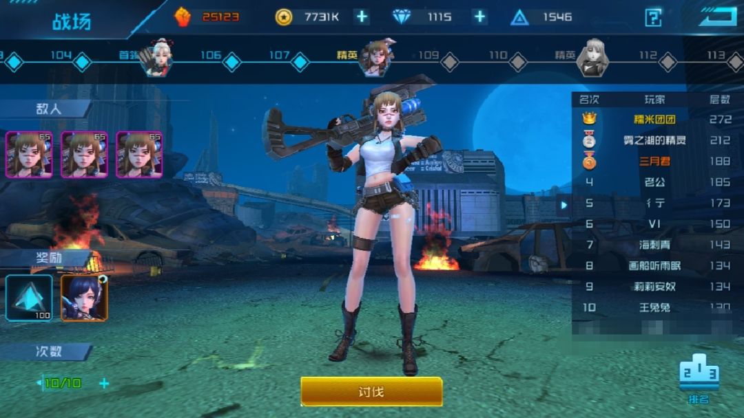 打模拟战场单体爆发及连击女神优势大,比如神秘女巫/幻影之剑/冷面战姬等…主角装备枪能打出更高伤害。