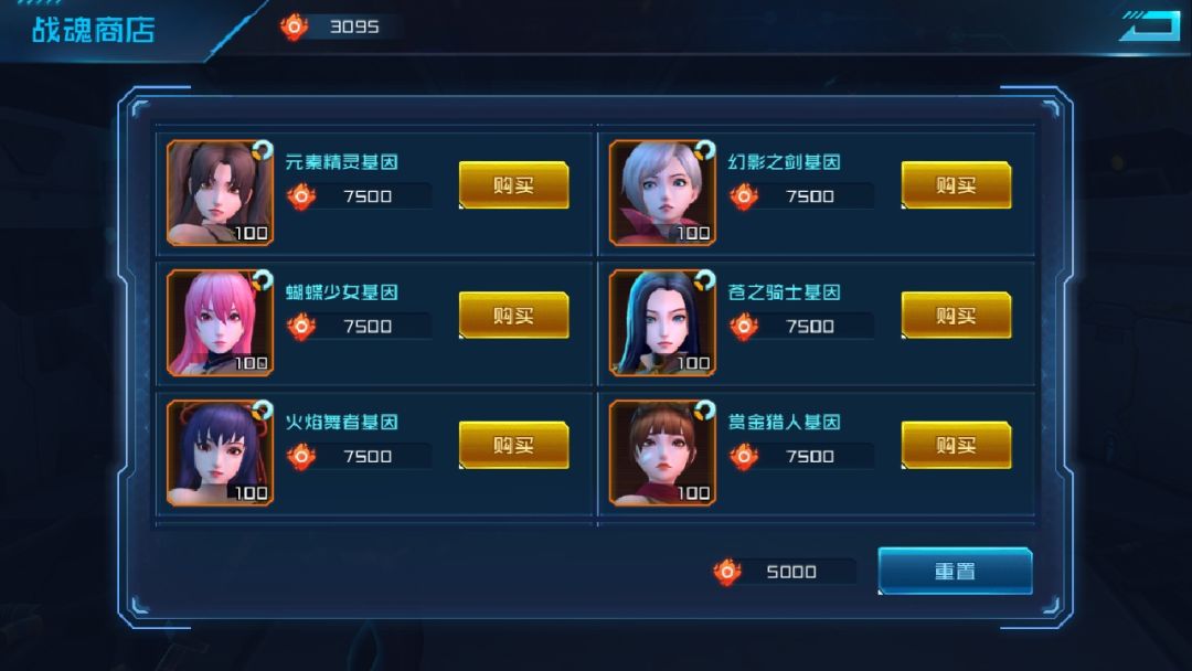 商店能兑换所有S女神,战魂商店不会自动重置,重置需要花5000战魂,不到万不得已,千万别重置!!!战魂可通过分解A级以上卡牌获得,1个A级基因碎片换1点战魂,1个S基因碎片可以换5点,这个获取方式只能日积月累,大R另当别论。