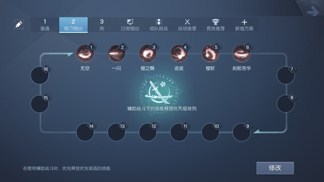 铭刀顺序一闪 樱舞 逆波 樱斩 刹那 无空 切换