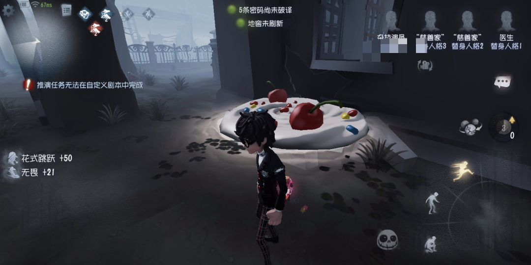 勇敢:被监管者追击60S时可以让杂技演员额外制作一个燃烧弹;