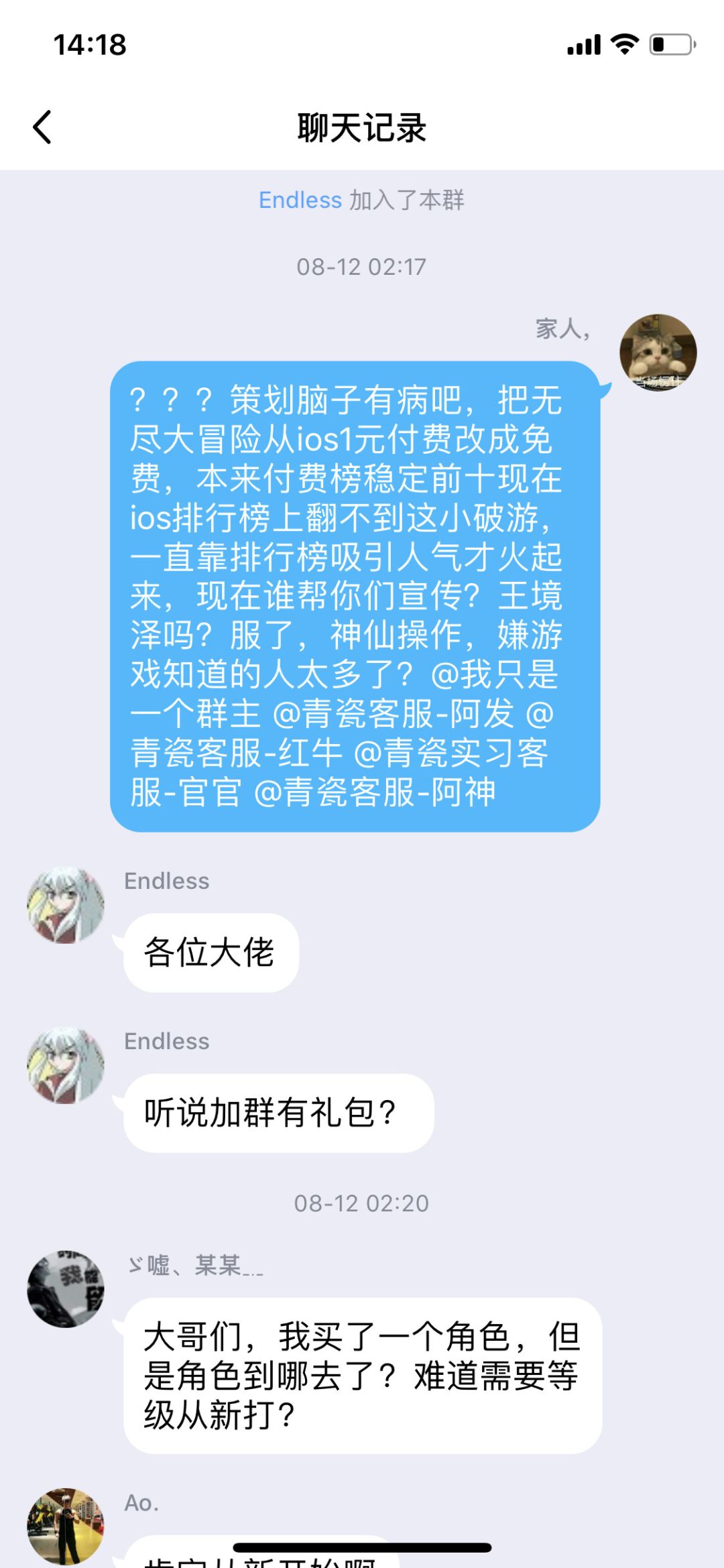 八月十二日在群里发了一条无人问津。