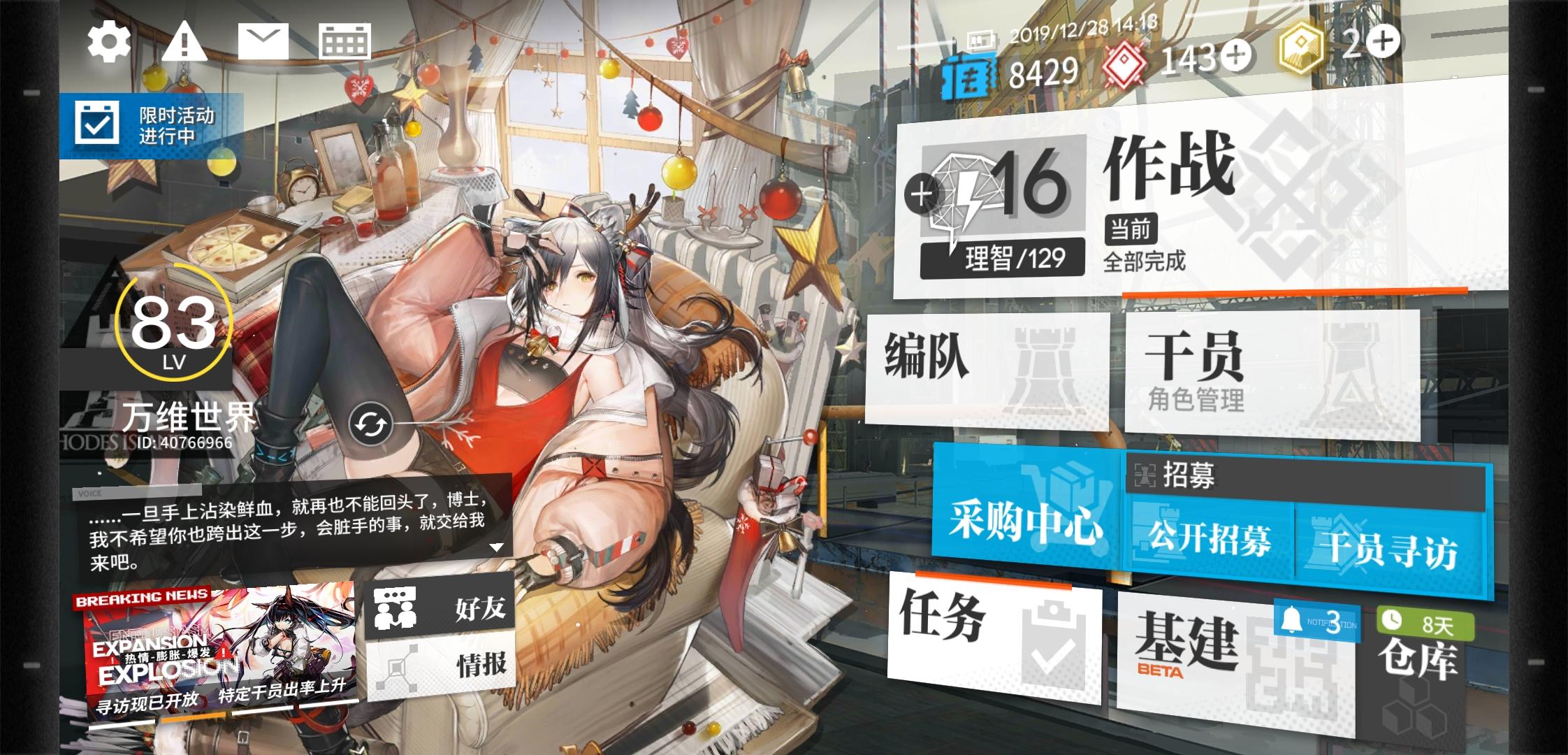 ,看着一把x,两把x,还是挺有成就感的,鹰角的立绘确实好看哈哈,皮肤靠着通关送的,游戏维护的白嫖也买了好一些。从五月一直玩到现在,总感觉待我不薄,到83级想出的基本都出了。