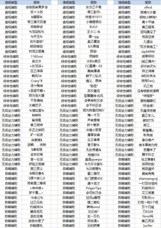 以下为本周部分违规用户名单,本次名单中仅列出情节特别严重的用户处理名单,其他被封禁名单已作出相应处理,不再具体通报。