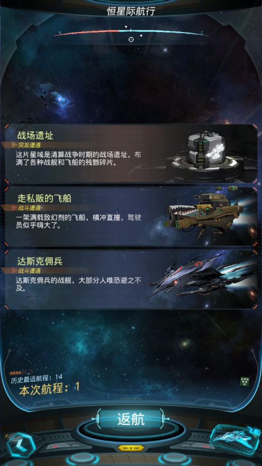 如果可以顺利完成随机事件,船长的航程就会+1,如果挑战失败,飞船就只会停滞不前。