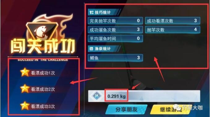 钓上鱼后有很多信息在这个版面显示出来,有鱼的重量、体型、水层、食性..........。