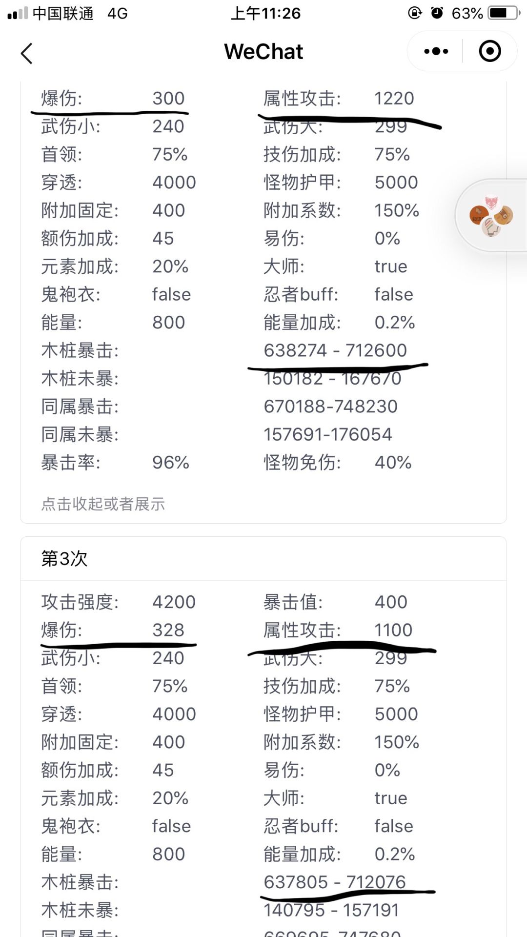 爆伤300时,属攻1500为阈值,大于1500,爆伤好,小于1500,属攻好