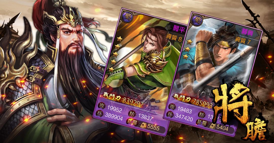 關羽手持青龍偃月刀、過五關斬六將的英勇姿態,深植在大家的心中~他的兒子關平、關興也跟隨著父親征戰四方,立下不少戰功。最後長子關平與父親一同戰死,關興則繼承了父親的爵位,受到諸葛亮的器重。當主公同時擁有這三名武將,可以觸發關平、關興「武聖血脈」羈絆,提升攻擊屬性!有了武聖父親加持,孩兒們在戰場上可是有如神助!