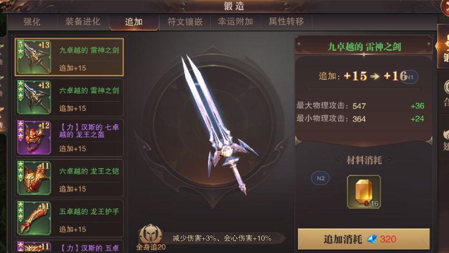 追加原则——装备的追加可以提高装备的基础属性,比如胸甲,追加可提升生命值和防御力,首饰不可追加。