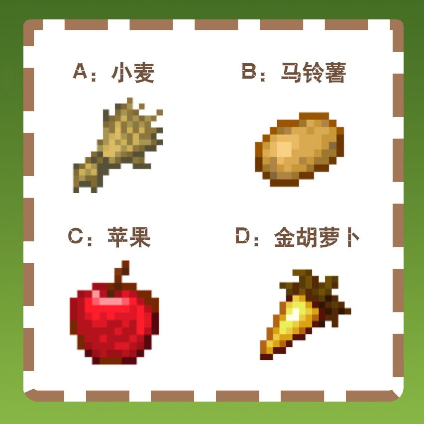 请听题,第一题:请问哪种食物无法让马快速回复血量