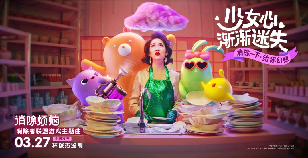 而在《消除烦恼》MV中,《消除者联盟》手游出现在现实场景中,用强烈的色彩对比以及时尚的布景装饰,将人们生活中的烦恼表现出来。并具象化的把烦恼表现成紫云,消除联萌使用他们的音乐与乐观的生活态度,去对抗烦恼。用音乐的魅力去感染身边遇到的每一个人,就像萌翻世界的6向消除手游一样,面对烦恼,爱怎么消,就怎么消。