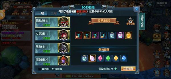 各位玩家每天的挑战奖励次数消耗完毕之后,还可以花费50钻石来获得额外挑战次数,每天有3次购买上限,性价比极高。即使不够幸运抢不到BOSS,也能获得参与奖励,分得一杯羹。