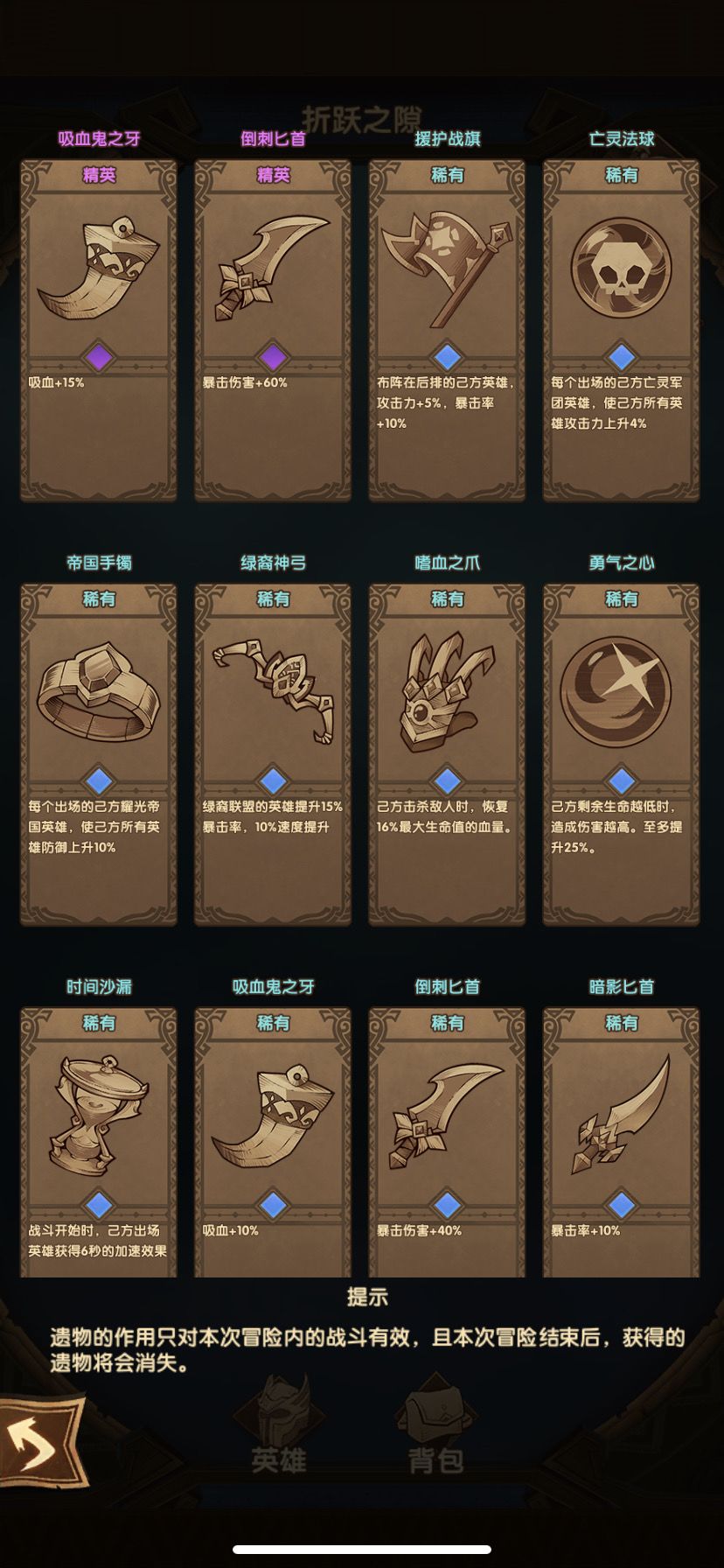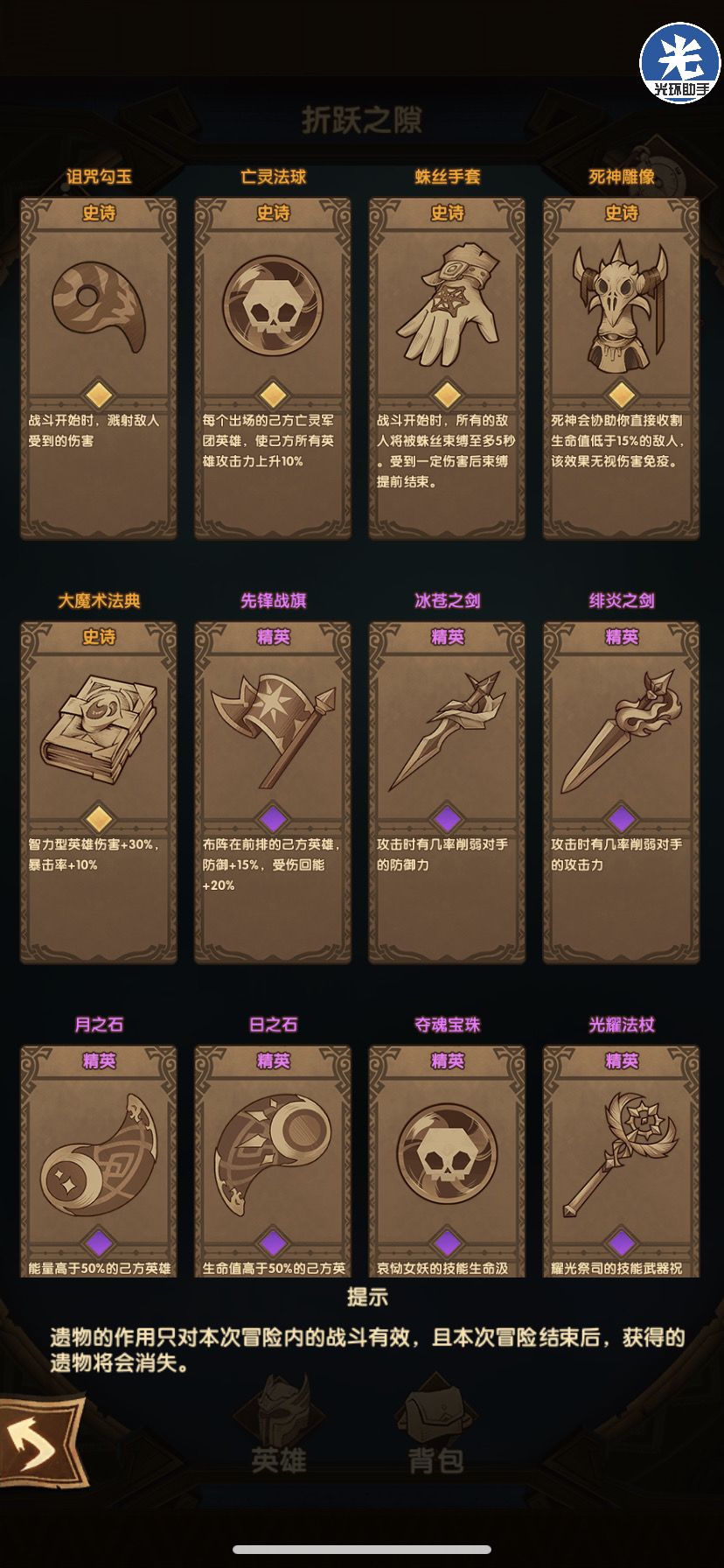橙色遗物优先伤害,死神 大魔术法典 雷锤都很优秀,可以考虑来个蛛丝手套,车轮战拖延五秒回蓝很不错。溅射勾玉己方战力不高的时候意义不大,可选可不选。