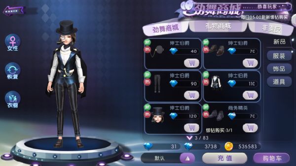 除了动感清爽的夏季风格以外,劲舞商城还带来一股复古的潮流。端庄的绅士帽、白色衬衫和西装背心,再披上帅气的披风,打造高贵庄重的贵族风。试试不一样的风格,或许会找到更适合自己的装扮!