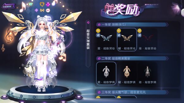 华丽精美的贵族风套装一向在劲舞世界中拥有超高人气,这次《劲舞团》手游把五线谱、音符、水晶羽翼的元素增添到彩蛋套装中,带来视觉惊喜。本次幸运嘉年华中全新登场的超音彩蛋,幸运的AU偶像将有机会获得隆重而耀眼的超音女神、超音男神套装,来试试你的手气吧!