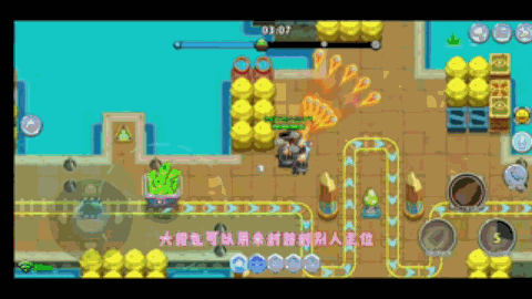 小技巧:全能大招范围非常大,子弹可以完全覆盖山丘,和矿车,不让他们进圈站点。