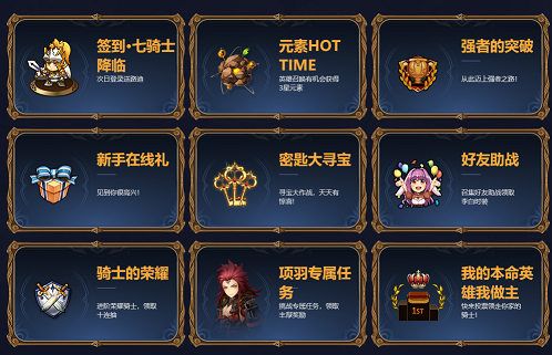九大福利包括了新手在线礼,达到累计在线时间就能获得金币、红钻、四星武器召唤券、防备召唤券以及元素选择券等等哦。在游戏过程中还有各种任务奖励,哪怕在刷副本上无限塔的过程中,都会有对应的活动奖励哦。召集好友一起来打BOSS更是好礼不断,更多活动详情请登录《十二战纪》官网查询了解。