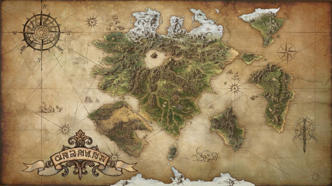 人类、精灵、矮人和兽人四大种族的领地位于超级大陆之上。以被内海环绕的自由都市为中心,北方为矮人族领地、南方为兽人领地、西方为精灵族领地、东方为人类领地。