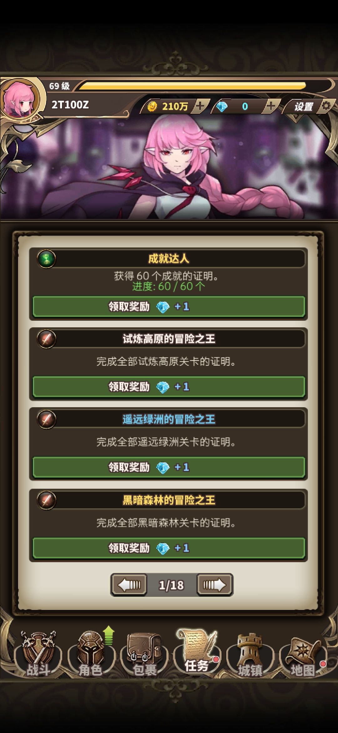 通关奖励:通到69级boss,一共16钻。广告奖励:1天6钻总:73+16+6=95
