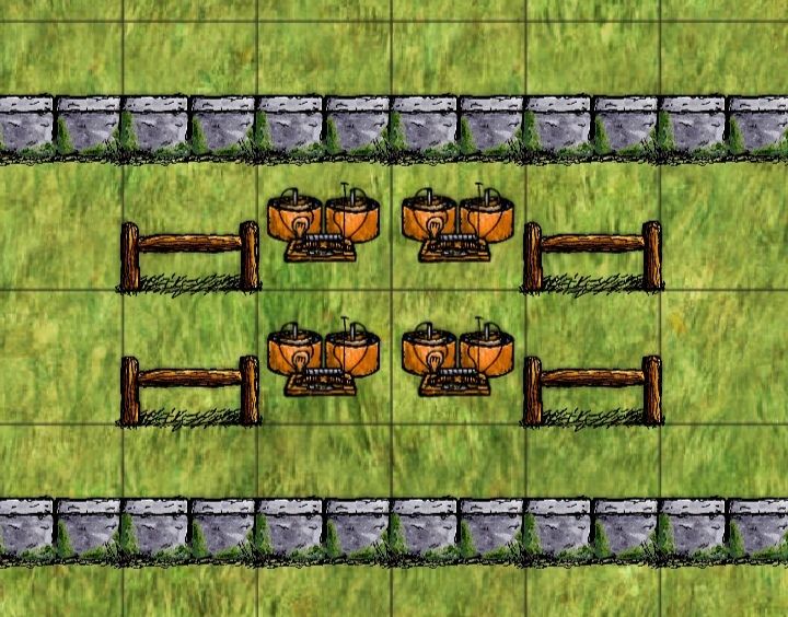 我将里面全部放上障碍物(为什么选调频发射器呢?因为现版本中,不阻拦移动但占位置的而且不可拆除的只有它)并留出一格。这样他拿锥子打掉的时候可以把锥子放下去拿木棍,并且放不了其他东西。但其实这样也有漏洞:人可以用推车,篮子,背包等运输小型甚至大型物品。