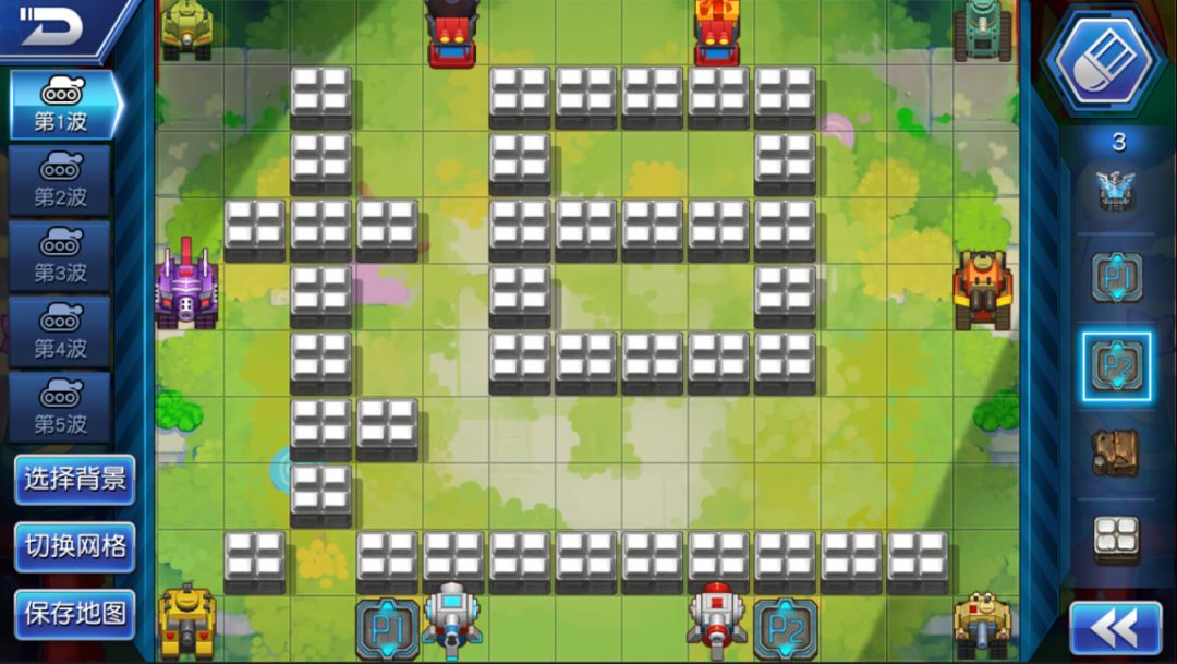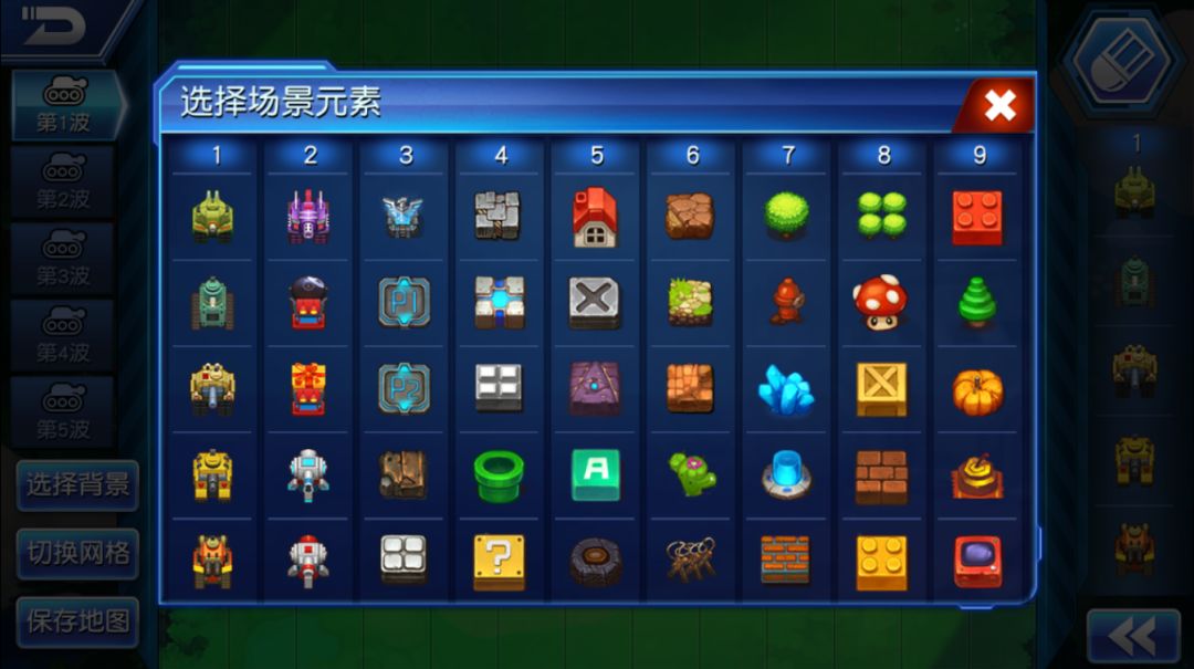 在这里小伙伴们可以尽情发挥自己聪(xie)明(e)材(xiang)质(fa),地图中地形、背景、每波敌方坦克、建筑等众多场景元素任你选择布置,不过小编友情提醒大家,在制作过程中,小伙伴们可以随时点击“删除地图”将其删除,已上传的地图可就无法再删除和修改操作了,此外编辑完成后上传您的作品前,需要自己先试玩通关,在试玩中小伙伴所有的道具消耗都会在战斗结束后归还,所以尽情使用吧 ≖‿≖✧