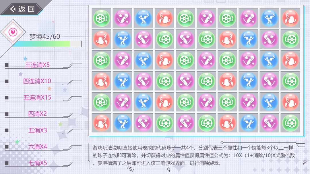 以其中一个剧情模式为例,该剧情下就包含了消消消游戏模式、密室探索模式以及回合奖励模式。