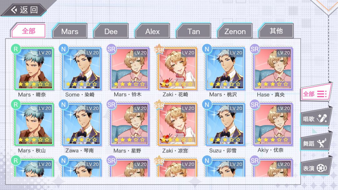 卡牌收集是角色养成的重要方式之一,游戏中卡牌分为N、R、SR、SSR四个等级。在收集列表界面,玩家可以通过选择主角和属性进行分类浏览。