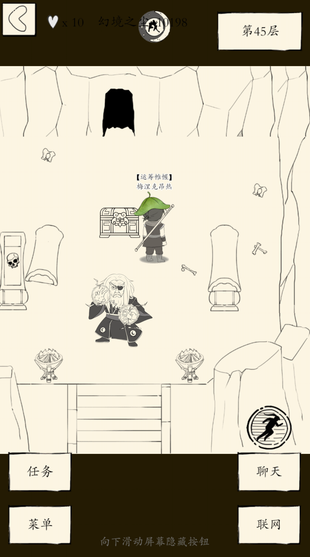 一直到44层完全无压力,45层遇到任我行。。。。。封穴和吸星大法很恶心,48遇到强壮青蛇用青蛇克星和三级毒霹雳雷珠强过了,50遇到鳌拜。。。。。。金钟罩😒😒😒😒(脏话)好在还是打过来嘿嘿开心