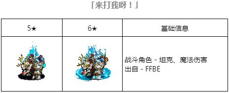 -「来打我呀!」增加「80%」的主动挑衅,再配合其自带的「30%」的被动挑衅,可以做到3回合「100%」挑衅。但是这并不稀奇,当下很多「挑衅坦」都能都轻松达到。而能让「白骑士」在众多「100%挑衅坦」中脱颖而出的是「来打我呀!」附带的两个「减伤」效果(「50% 物理 + 魔法减伤」)。FFBE 中的「减伤」效果分为「三」个类型 - 「物理减伤」(减免「物理,混合」伤害),「魔法减伤」(减免「魔法,混合」伤害),「一般减伤」(减免「所有」伤害)。这「三种减伤」效果是可以叠加的(乘法叠加)。而一般的「支援」兵员提供的「减伤」大多数都是「一般减伤」。「白骑士」在发动「来打我呀!」之后「三种减伤」效果在身, 真的很肉!!
