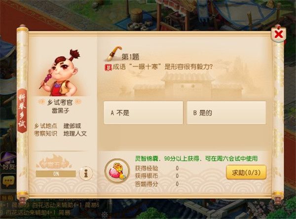 具体细看,乡试作为科举大赛的第一关,共有20道题目,玩家答对题目的数量≥9道时,将获得灵智锦囊,锦囊可于科举新会试中用来剔除一个错误答案;会试阶段,考试内容为15道选择题,全服统一考卷,答题有时间限制,因此既考察玩家的答题准确率,也考核玩家的答题速度,而这时候乡试中所获得的灵智锦囊就将发挥至关重要的作用。