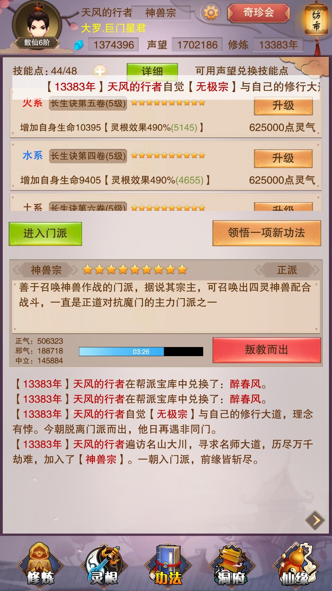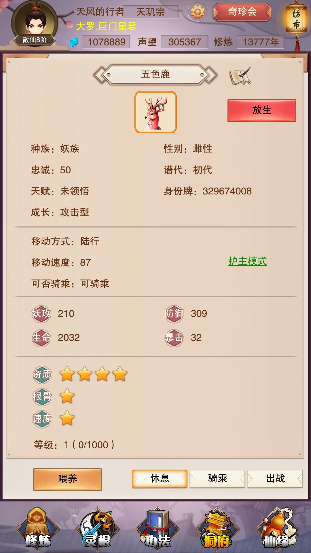 后来会长换天了,我就出去打星君了,靠着前期的优势我还是拿下了,并且一呆就是几千年。这个位置上我进了神兽,因为没有故意刷,所以散仙6才进