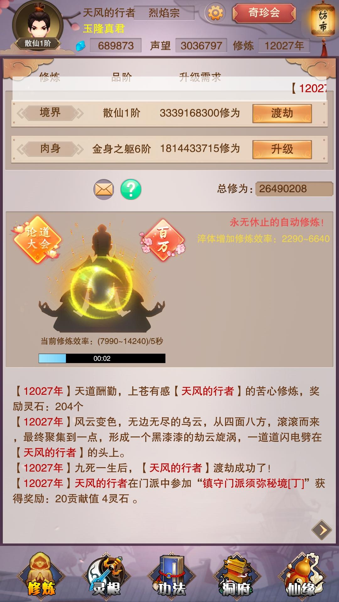 洞真金身点到了6,就导致我12000年才到散仙,记得本命青魔也就是在附近出的