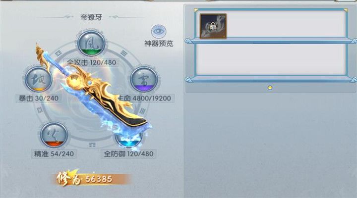 升级神器可以提供多方面属性,包括全攻击、全防御、生命值、暴击和精准。装备神器还会附带自己的神器技能,例如离山剑的高级神器技能可以在受到攻击后有10%的概率提升8%闪避,持续五秒,这个神器效果会随着神器的升级不断提升,闪避属性对于离山剑宗这类刺客来说是非常重要的。槐院的大师神器技能是受伤后有10%概率提升12%伤害减免,持续5秒,这是槐院成为坦克门派更难被击倒的保障。