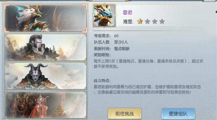当道友们的等级到达60级以后就可以组成队伍参与异世星魂活动。在每天的10:30-00:00的时间段内,每逢半点地图上就会刷新星魂供道友们挑战,每次持续半小时时间。异世星魂每天挑战前三次有奖励,星魂是海迪麾下的先锋军,他们拥有强大的实力,当星魂刷新在大周境内的时候需要大家组队前往对应的地图寻找击杀。