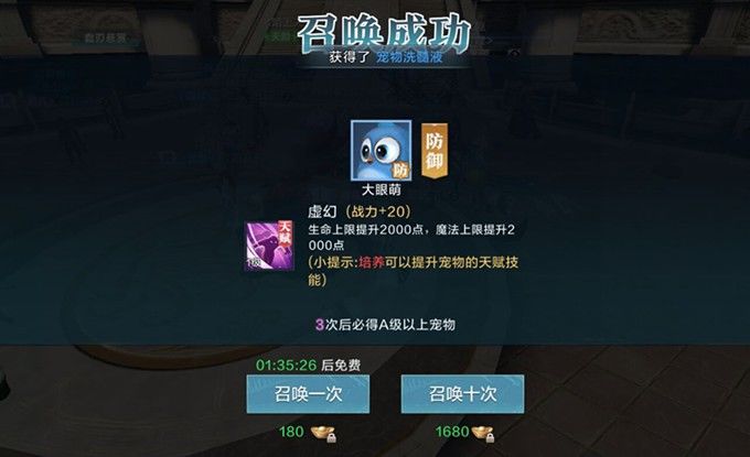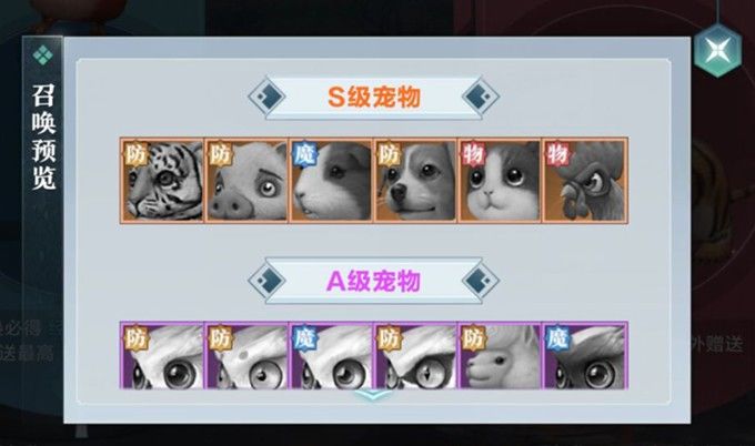 普通召唤和高级召唤必得宠物道具,还有几率获得各种品质的宠物,而且每天都有免费的召唤次数,超凡们一定不要忘记用掉召唤次数。