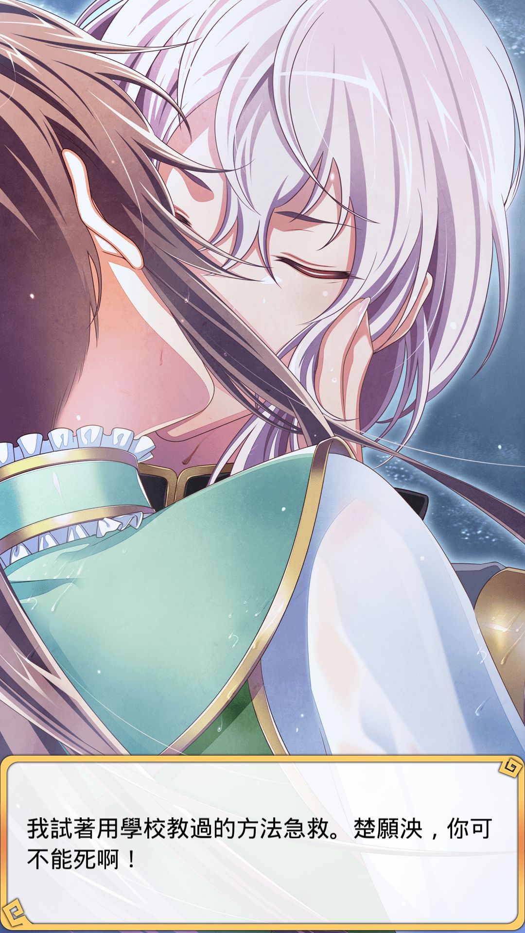 回到宮裏,女主有一天在御花園湖邊看見楚願泱, 楚願泱說自己在釣烏龜。女主一腔熱血想幫他,結果他說其實裏面根本沒有烏龜。女主被欺騙了很生氣,一記懲罰之拳打過去,結果楚願泱被打暈掉進水裏。女主很慌张,下水把 楚願泱救上來,但是楚願泱已經沒有呼吸了。女主很著急,只好試著用人工呼吸把楚願泱救回來。cg(这大概是这游戏唯一的kiss了)