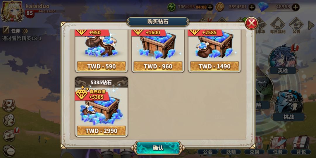 这游戏氪金土豪也一下玩不起来.每天坚持时间长了咸鱼也能变大佬.各种活动送钻石.现在几乎自给自足.无论开新等级还是出新人物都有足够的资源.反正这是一款需要时间累计的游戏.到了后期每天上线半小时以内就能保证每周的收益在最高一档次.