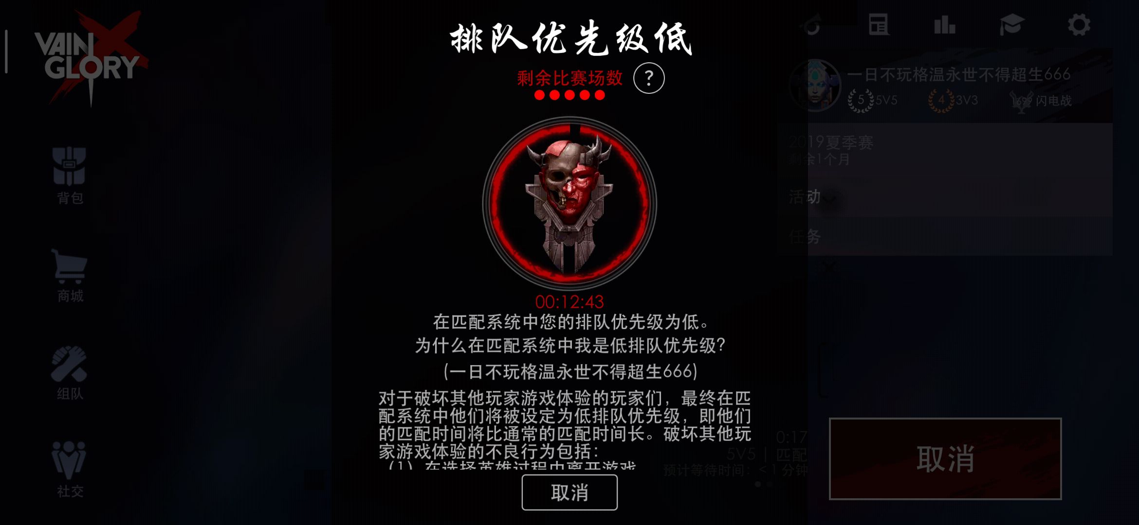 我不知道怎么搞的不知道是之前说了什么不好的言论,还是卸载了两天重新入坑的原因,今天下午打了一把,二十比几比多少的猪儿,现在就给我说这个,我不知道是不是恶意报复,我是真没觉得我哪里错了