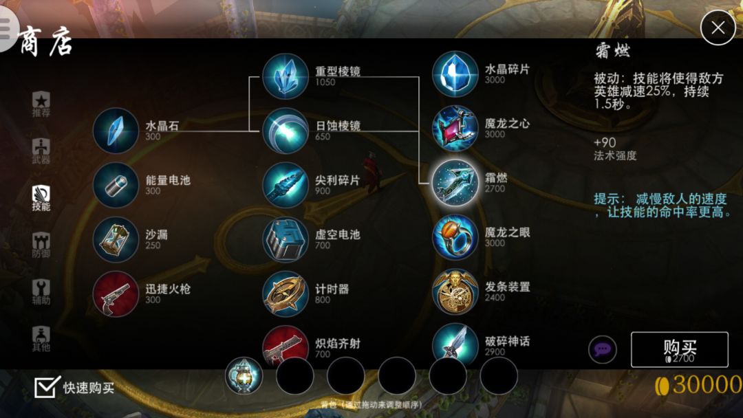 首先我们可以看到霜燃的描述是:技能使敌方英雄减速25%,持续1.5秒。持续用技能攻击敌方不会叠加效果,而是重新触发霜燃,霜燃没有CD,可无限使用。